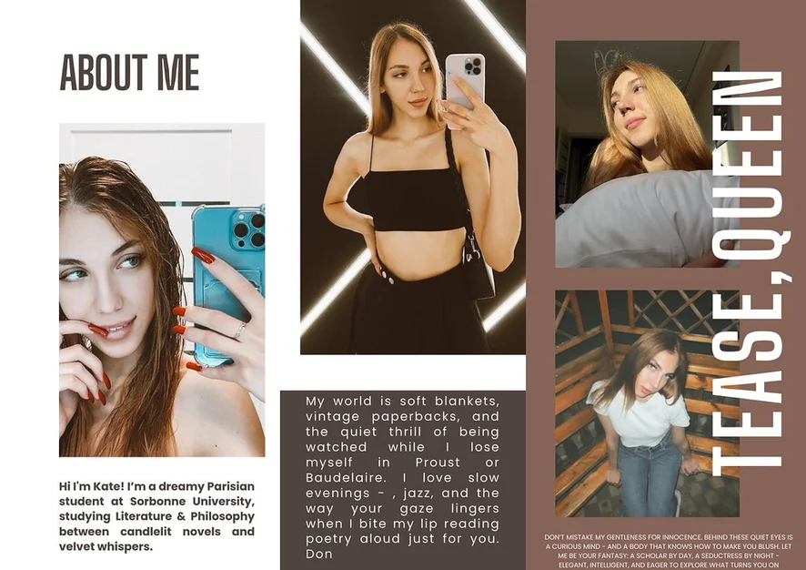 I love attention, teasing looks and slow tension in the air.